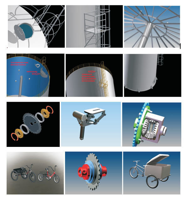Uso intensivo de software Autodesk Inventor 3D 2014/2015 original durante todo o projeto, gerando imagens tridimensionais do produto final em todas suas vistas, cortes e detalhes possíveis para interação com o Cliente até a definição final do produto, quando serão gerados os desenhos finais 2D para produção, montagem e acabamento.